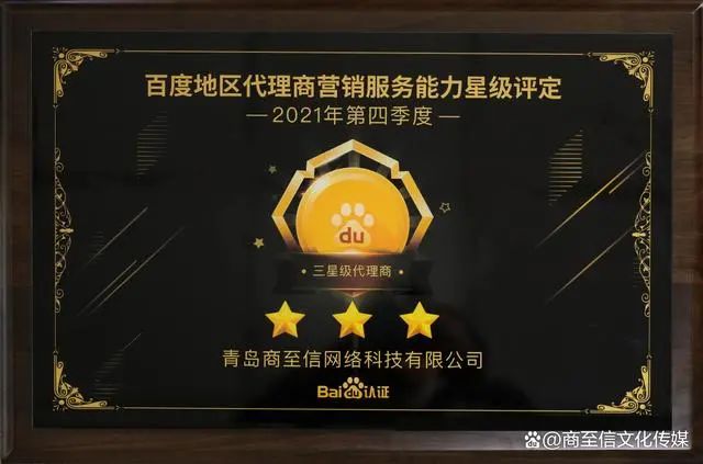 青島商至信網(wǎng)絡(luò)科技有限公司成功認(rèn)證百度三星級(jí)代理商