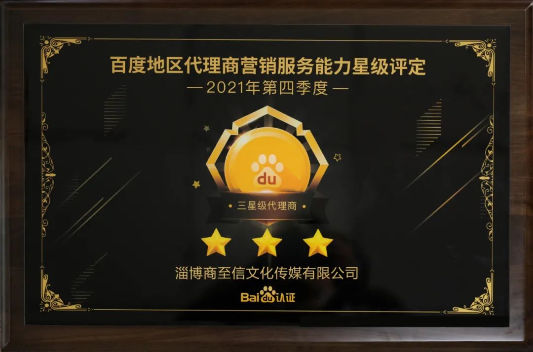 淄博商至信網(wǎng)絡(luò)科技有限公司成功認(rèn)證百度三星級(jí)代理商